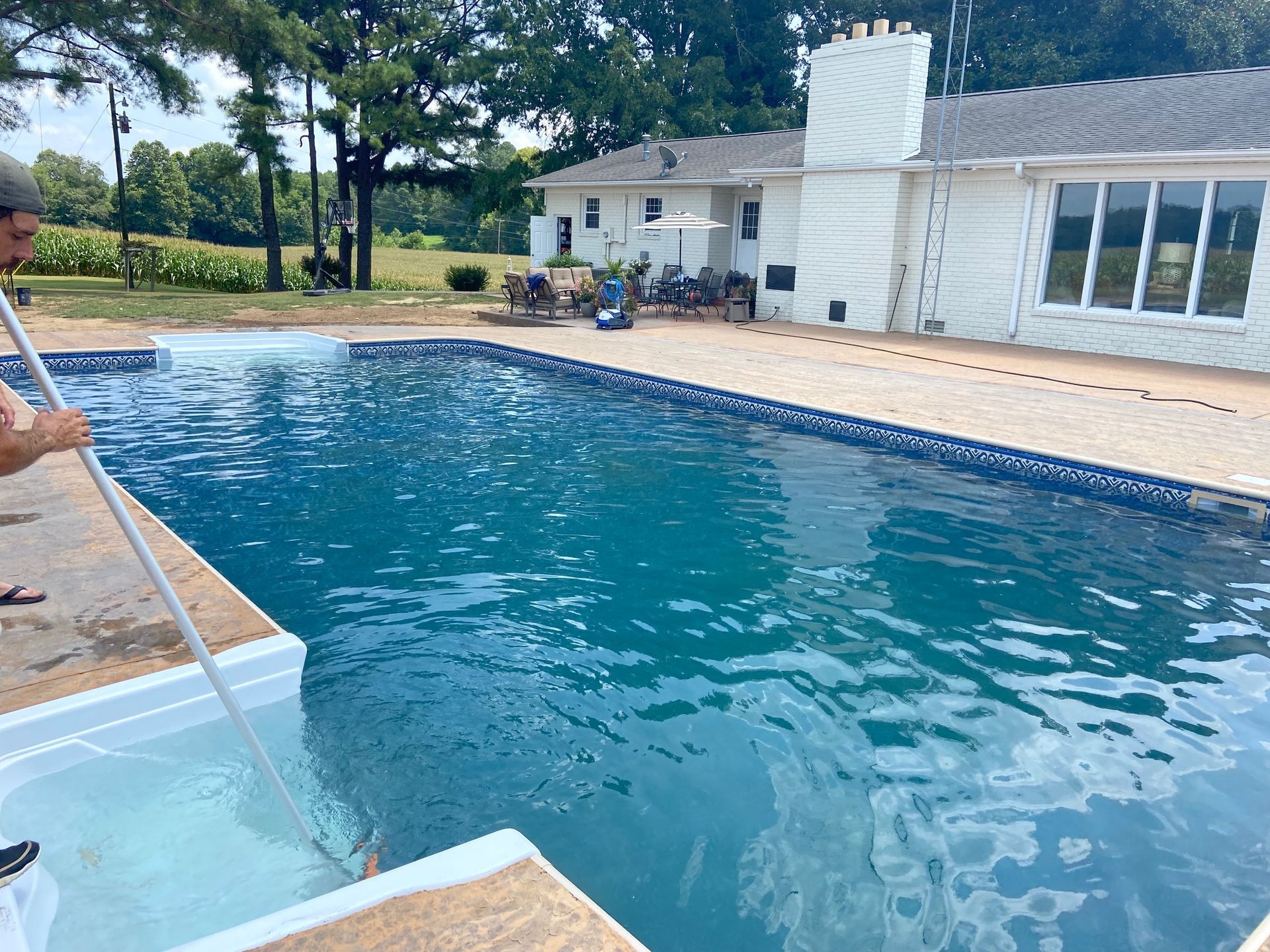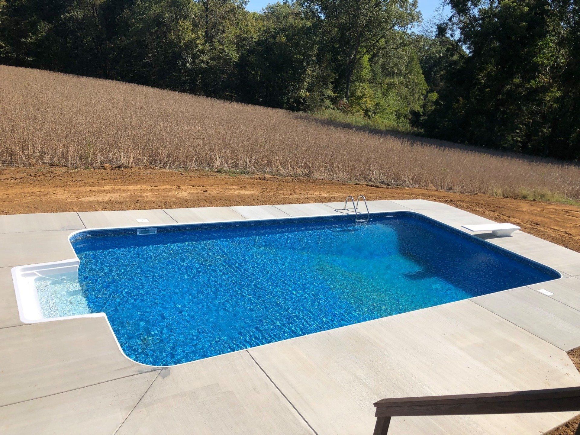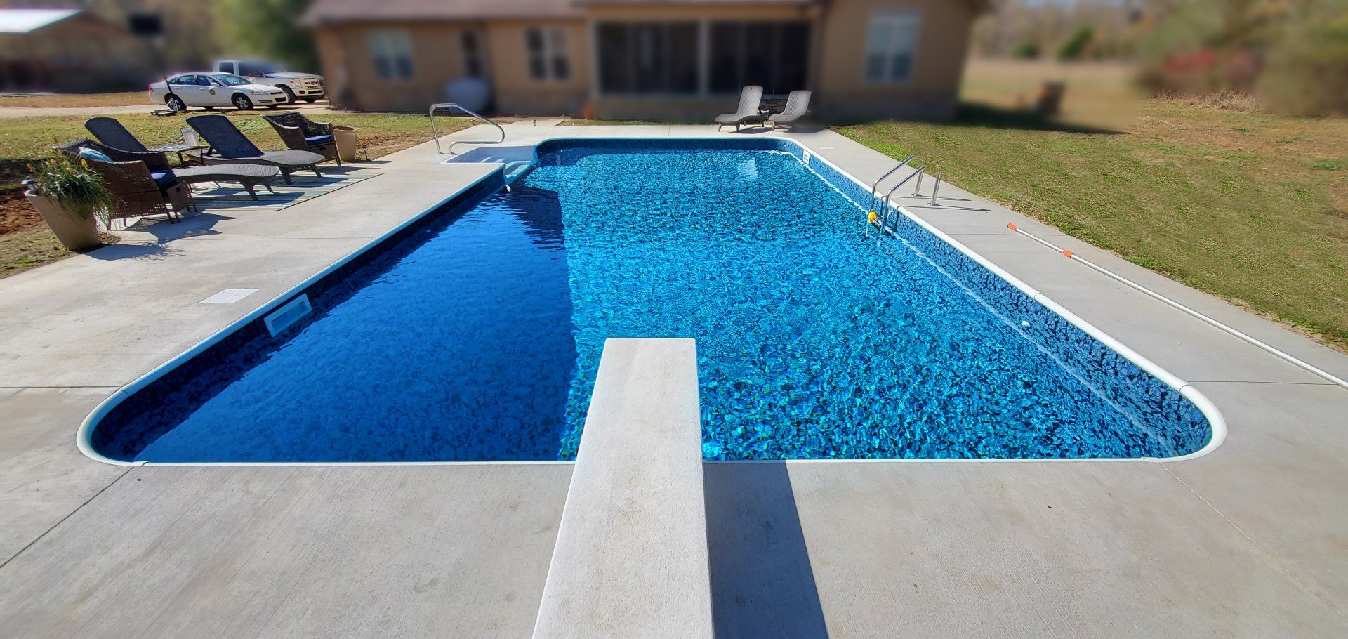 The classic rectangle pool's sleek straight lines reinforce an architecture’s grandeur, creating an ambiance of elegance. A rectangle pool can help give you the most space out of your back yard oasis. You can even customize your rectangle pool with steps, diving board, or even a sun deck that best fits your needs.